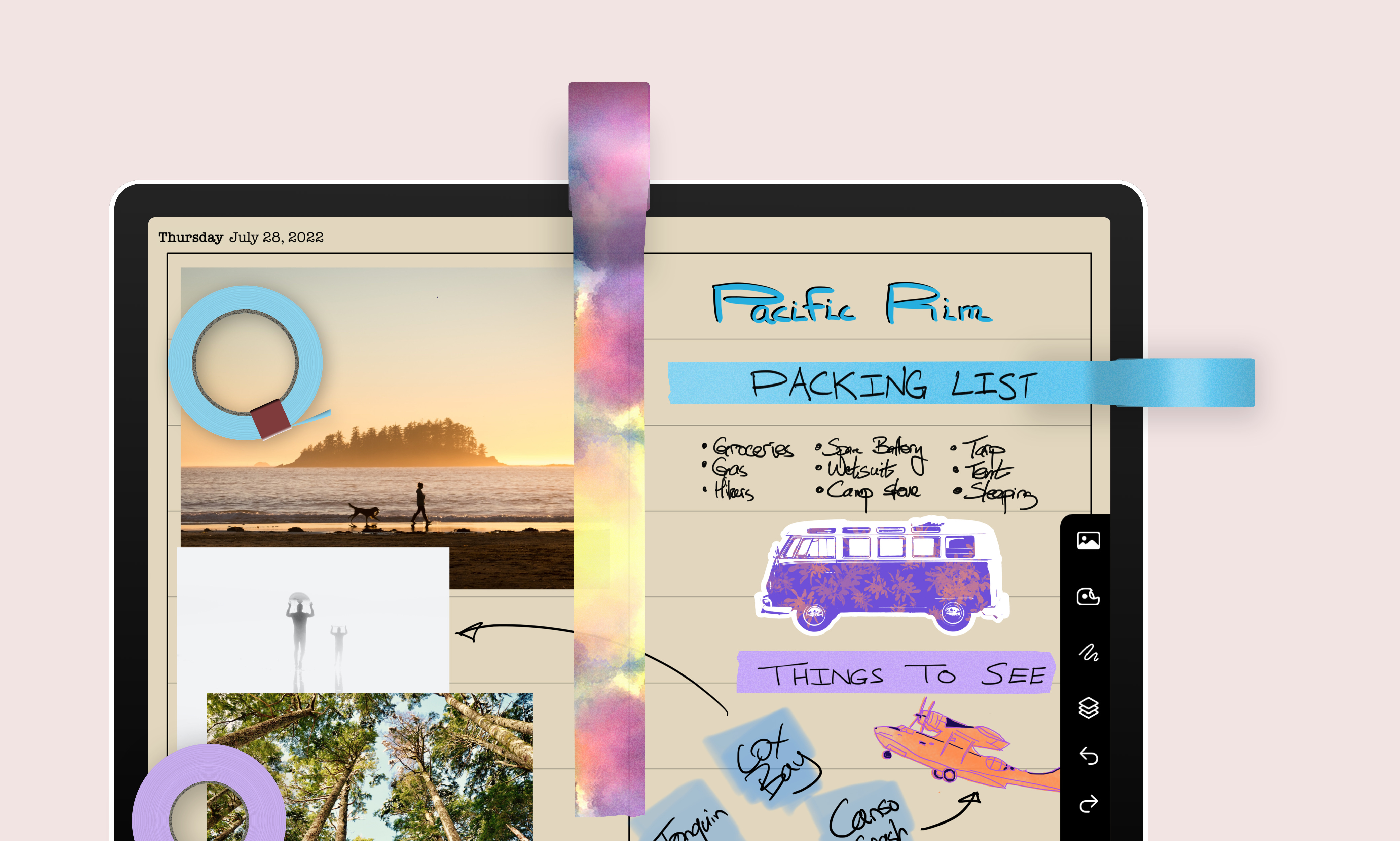 You can now add photos, stickers, and washi tape to your penbooks. This was by far our most-requested feature – well, the photos, anyway; no one asked for washi tape, but you know what they say, a customer will ask for a faster horse (i.e., photos) when what they really need is a car (i.e., washi tape).